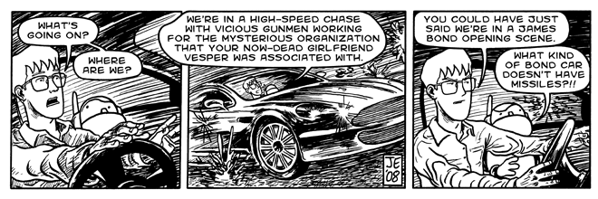 So Steph and I caught Quantum of Solace on Friday — What a fun time in a theatre! The showing started off with several exciting trailers for some of the big blockbusters that will be arriving in the spring. Quite a few of them didn’t interest me, such as Angels & Dem