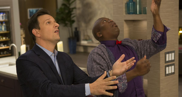 22. Unbreakable Kimmy Schmidt: “Kimmy is a Feminist!” (Season three, episode six, released on 5/19/17) — I thought that this third season of Kimmy Schmidt got off to a bit of a shaky start, but things clicked into gear with this episode, which built into a fantastic, hilarious farce in which Jacqueline attempts to keep Russ’ brother Duke (Sports Night’s Josh Charles in a fantastic recurring guest-star role) attracted to her without actually cheating on her husband (played by David Cross before his whole body got “smooshed” in an accident) with him, while Titus pretends to be Jacqueline’s gay best friend Flouncey McGoo, who also has a thing for her.  Jane Krakowski and Titus Burgess were perfection.  This episode also mined a lot of laughs out of poking fun at hyper-sensitive “woke” millennials, as Kimmy has trouble navigating today’s college campus environment.  (Kimmy’s misunderstanding of what “ghosting” is was very funny!)  (Click here for my full review of Unbreakable Kimmy Schmidt season three.)