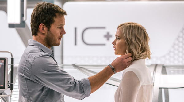 Jim (Chris Pratt) and Aurora (Jennifer Lawrence) are members of a colony expedition to a planet, Homestead II, far from Earth. But something goes wrong and they two alone amongst the 5,000 cryogenically frozen passengers aboard the space ship Avalon are woken from their sleep 90 yea